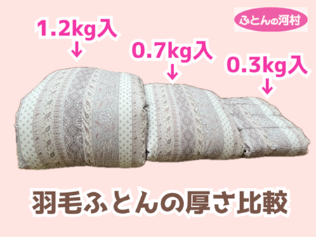当店では、冬用としての羽毛ふとんであれば1.2~1.3kg入っているものを取り扱っています。