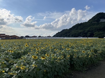 少し満開を過ぎていましたが、道の駅原鶴まえにあるひまわり畑や