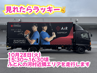 10月28日(火)15:30~16:30頃、当店近隣エリアを走行する予定です。