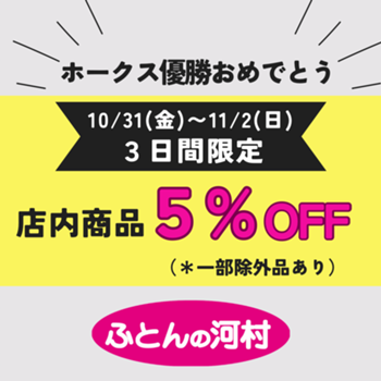 そこで、5年ぶりの日本一を祝して「優勝セール」を開催いたします!!