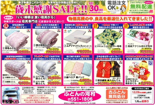 いつもふとんの河村をご愛顧いただき誠にありがとうございます。