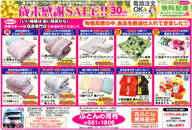 そんな2025年の最後にふとんの河村より皆様に「歳末感謝セール」のご案内です。