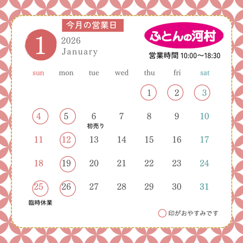 本年もふとんの河村を何卒よろしくお願い申し上げます。