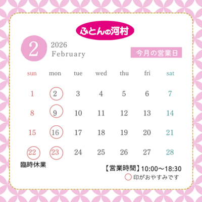 いつもふとんの河村をご愛顧いただき誠にありがとうございます。