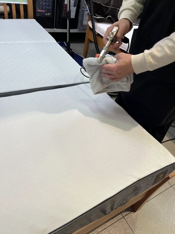 そして、仕上げとして、お客様のマットレスに除菌消臭加工をします。