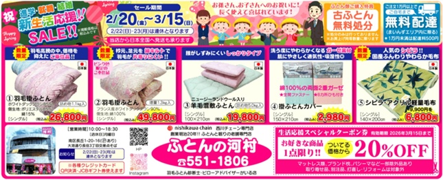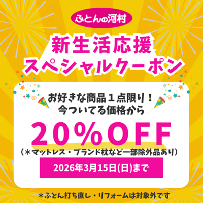 ふとんの河村では、『新生活応援セール』を開催いたします。