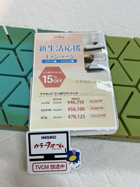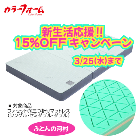 対象商品は当店でも人気のファセット®三つ折りマットレスの各サイズ。