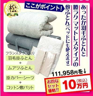 当店ではこの春、私たちお布団のプロが厳選した寝具をセットにしまして