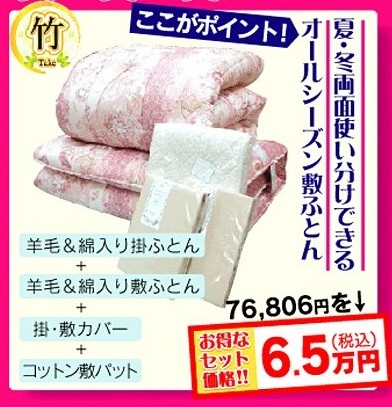 【竹セット】は、ふとんの河村オリジナルの羊毛&綿(コットン)入りのお布団です。