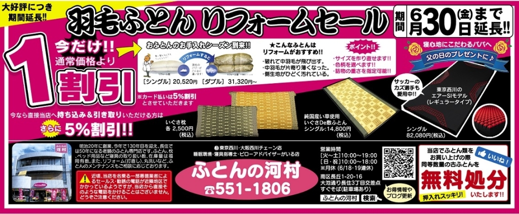 5月に大変ご好評いただいた「羽毛ふとんリフォームセール」。