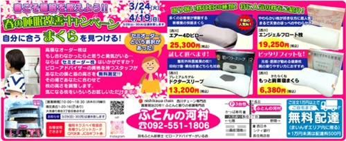 この春、進学・就職・結婚など新生活を迎える皆様おめでとうございます!!ふとんの河村では、『新生活応援セール』を開催いたします。一度購入するとなかなか買い替えないのが寝具。なので、安かろう悪かろうではなく、しっかり眠って疲れのとれる寝具を購入されるのがおすすめです。当店近隣エリアに無料配布される地域ミニコミ誌ま...