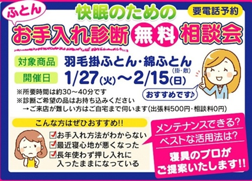 快眠のためのふとんお手入れ診断無料相談会 ~2/15(日)まで